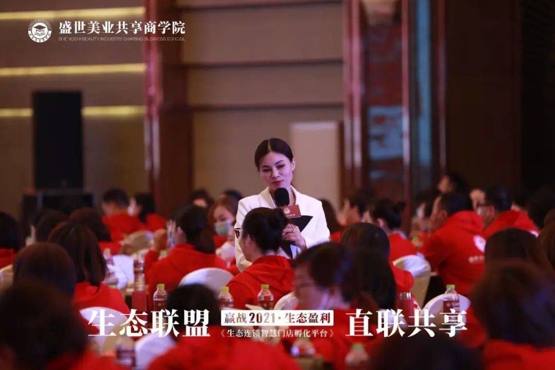 ▲ 盛世美業(yè)共享商學(xué)院院長(zhǎng)王星宇分享成功案例