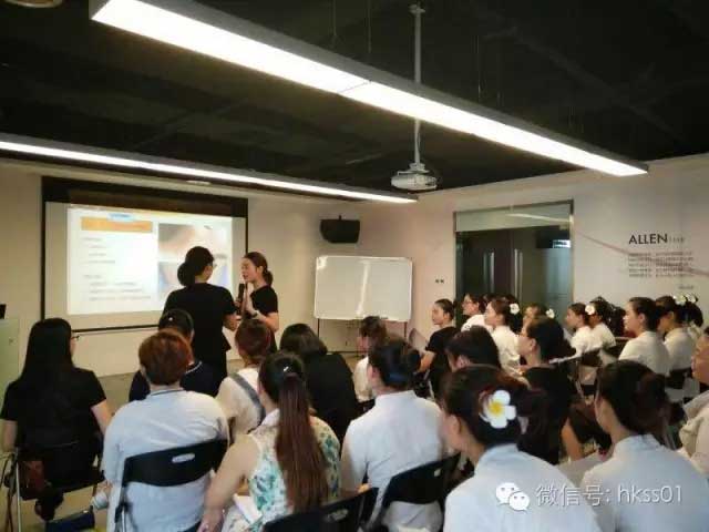 盛世黃玉蘭總監為艾倫美容的寶貝們講解項目優勢及專業知識